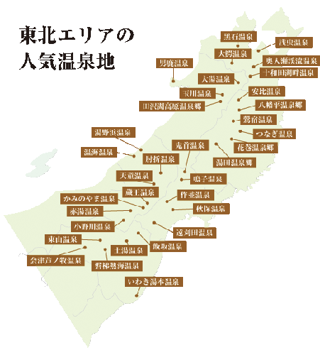 | 田沢湖高原温泉郷 | 男鹿温泉 | 大湯温泉 | 玉川温泉 | 乳頭温泉郷 | 水沢温泉郷 |